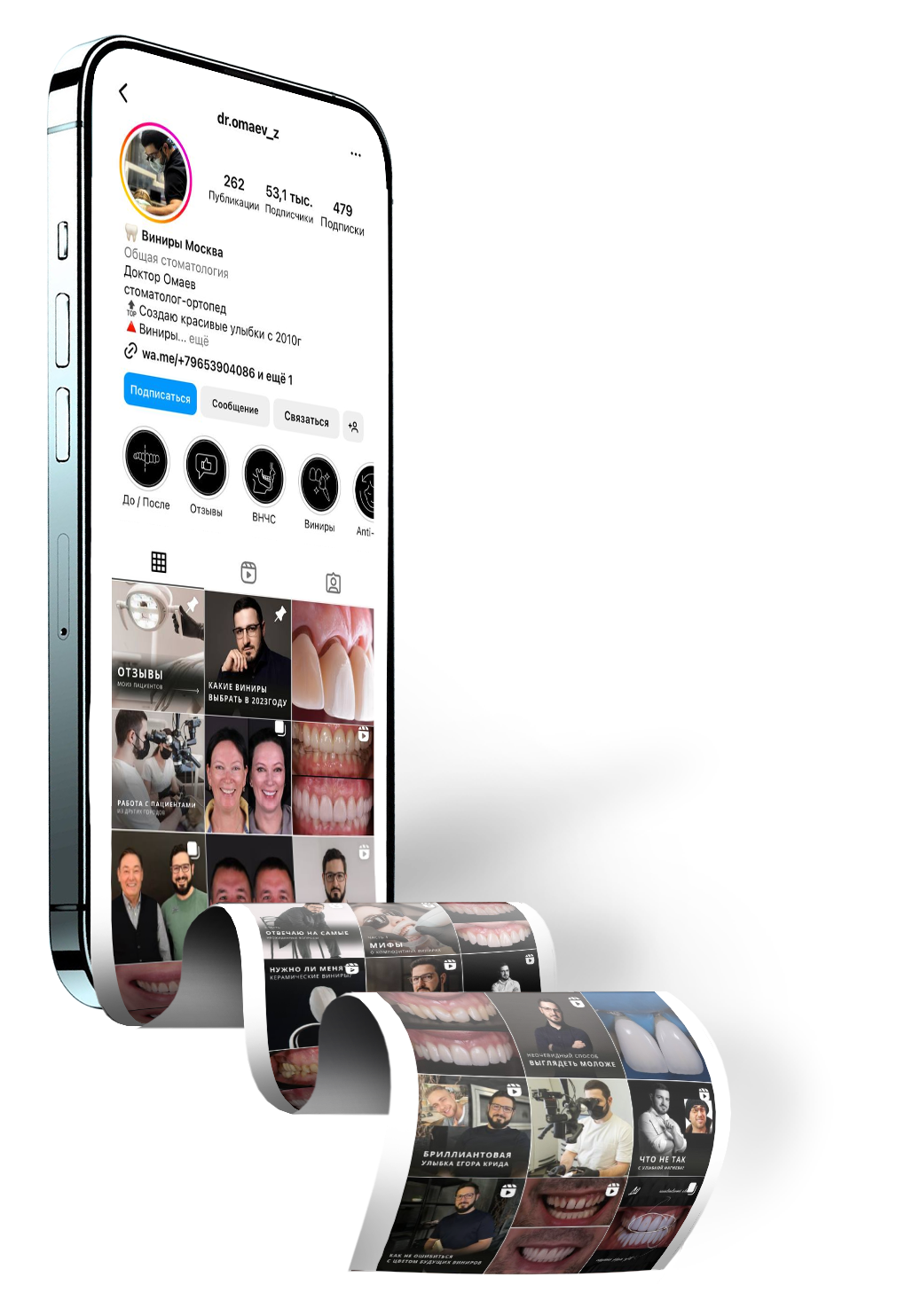 Визитная карточка стоматолога-ортопеда - его кейсы. Мы разработали несколько форматов оформления работ, чтобы продемонстрировать экспертность и опыт врача.