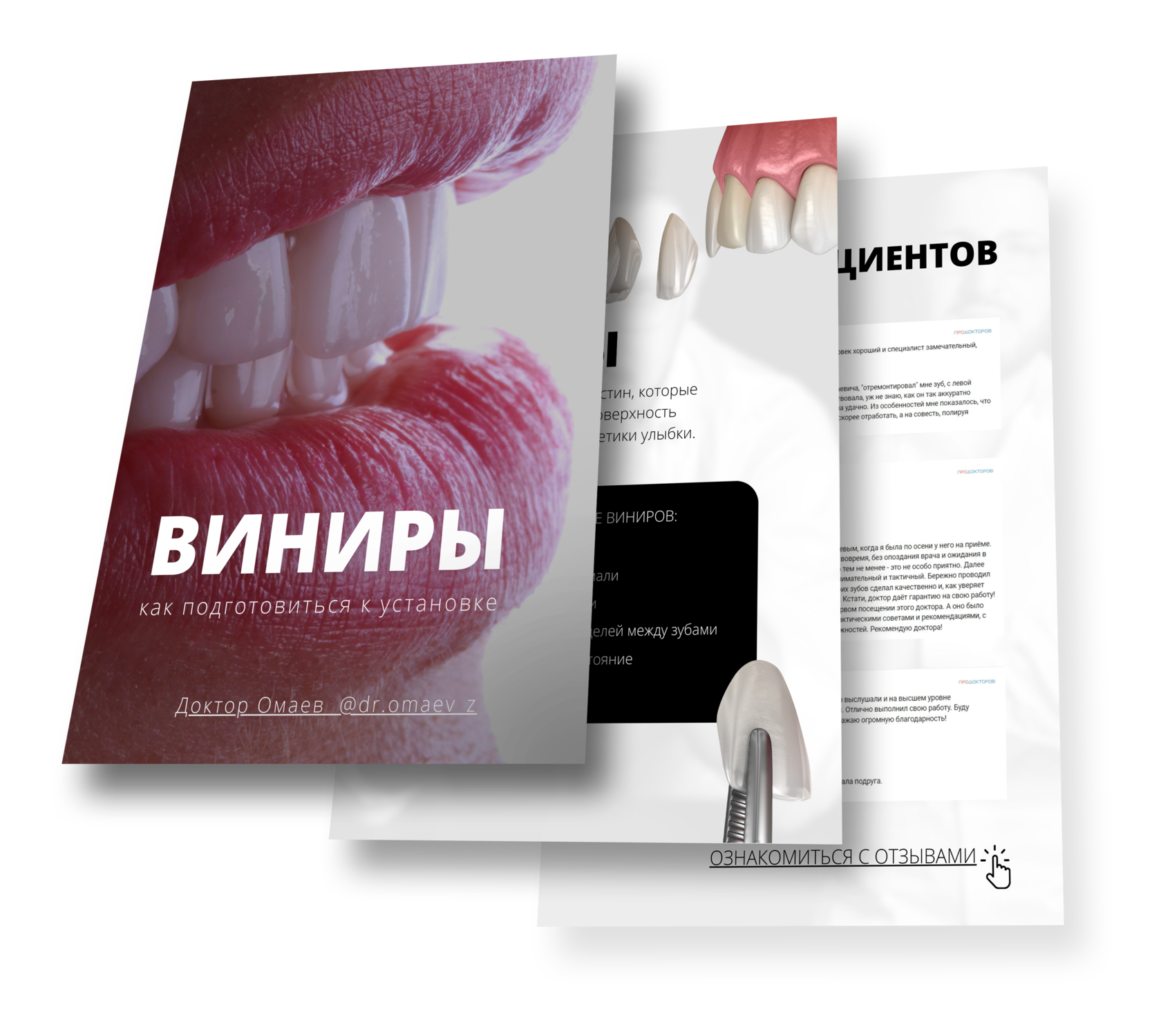 Для того чтобы повысить лояльность аудитории и закрыть основные возражения мы разработали памятку по подготовке к установке виниров, в которое не только рассказали о показаниях и этапах проведения процедуры, но и подкрепили её кейсами врача.
