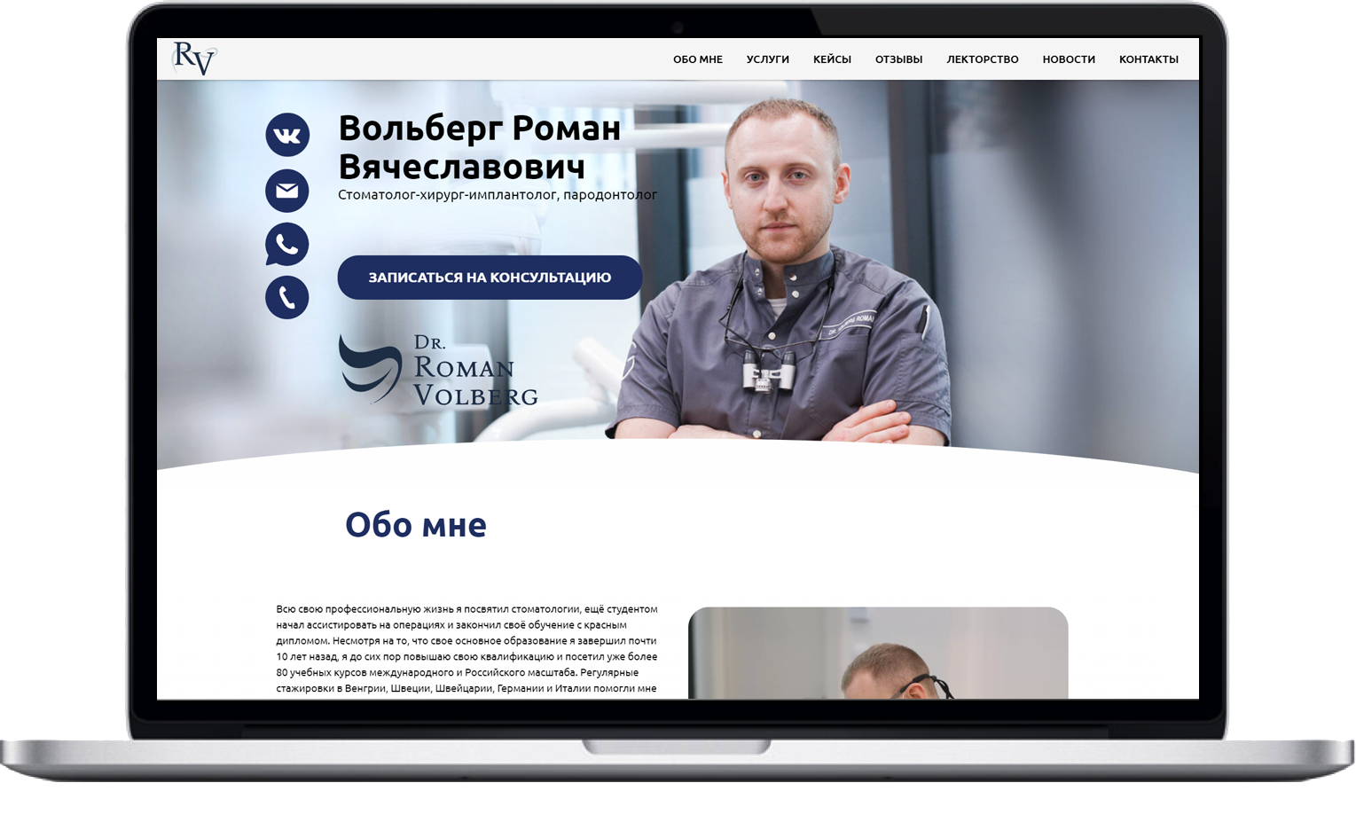Создание, оформление и оптимизация личного сайта-визитки с необходимой информацией, как для пациентов, так и для коллег.